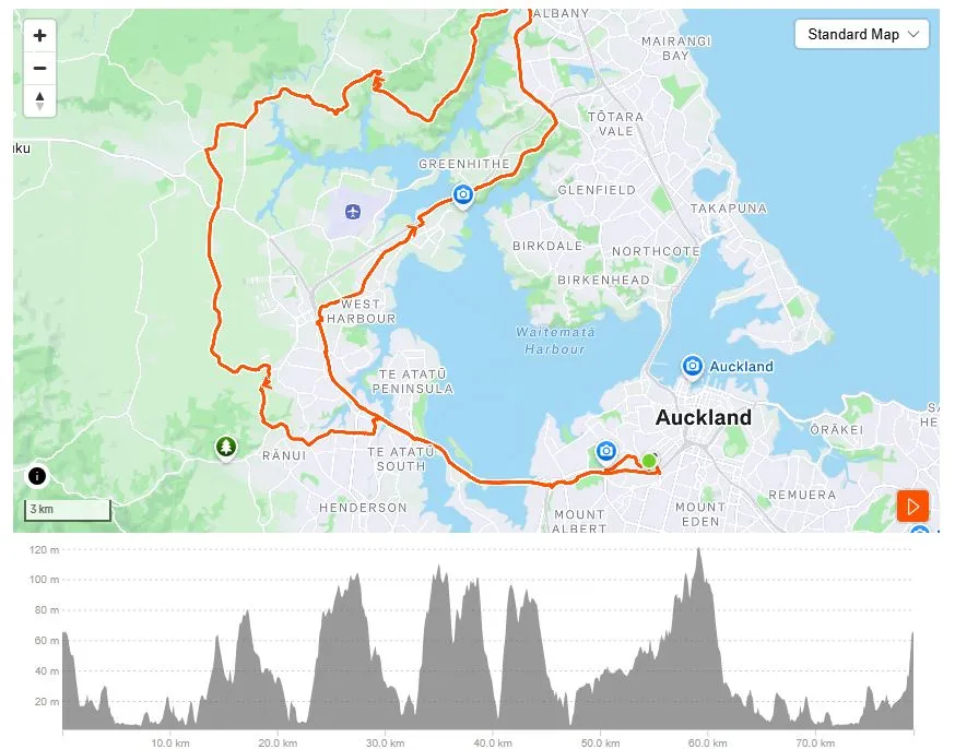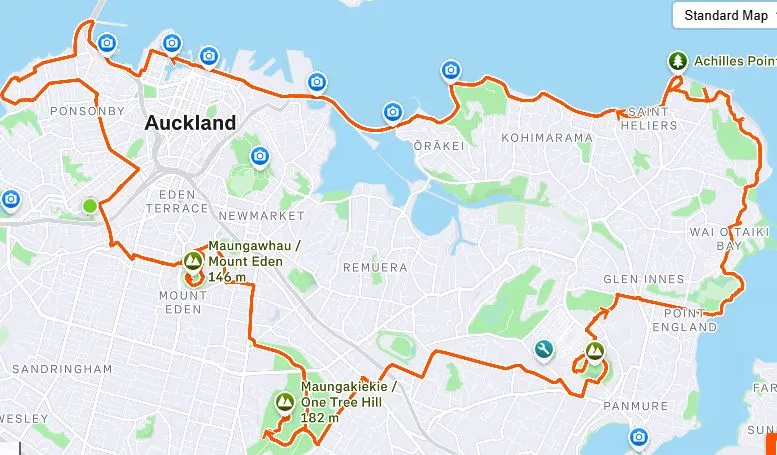 The route circles the central Auckland suburbs in an anticlockwise direction before returning along Auckland’s stunning waterfront, where you’ll find plenty of café stop options.